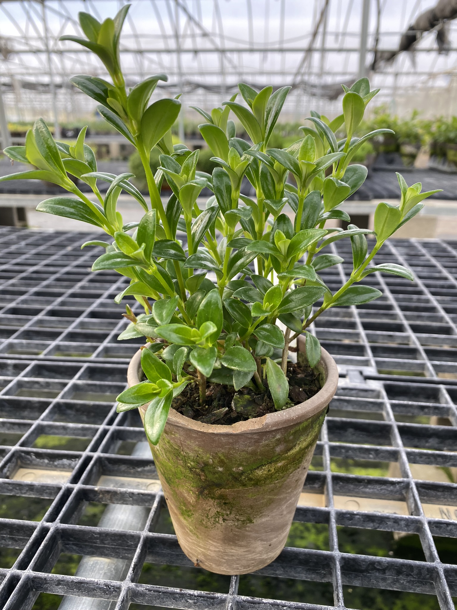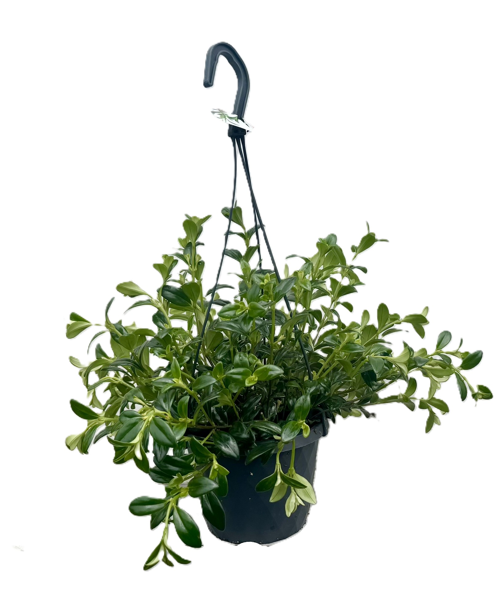 We typically grow goldfish plants in natural form in 4″ and 6″ pots as well as plants in 6″ plastic hanging baskets
