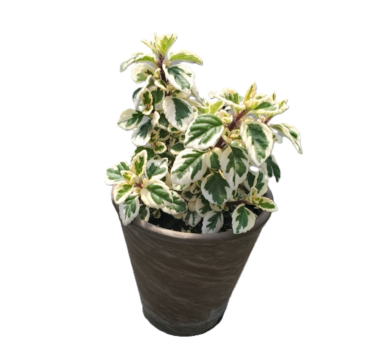 A shrubby, aromatic foliage plant with soft, textured leaves often tinged in gray-green or purple. Vigorous, bushy, and excellent for adding fullness and fragrance to indoor or mixed displays.