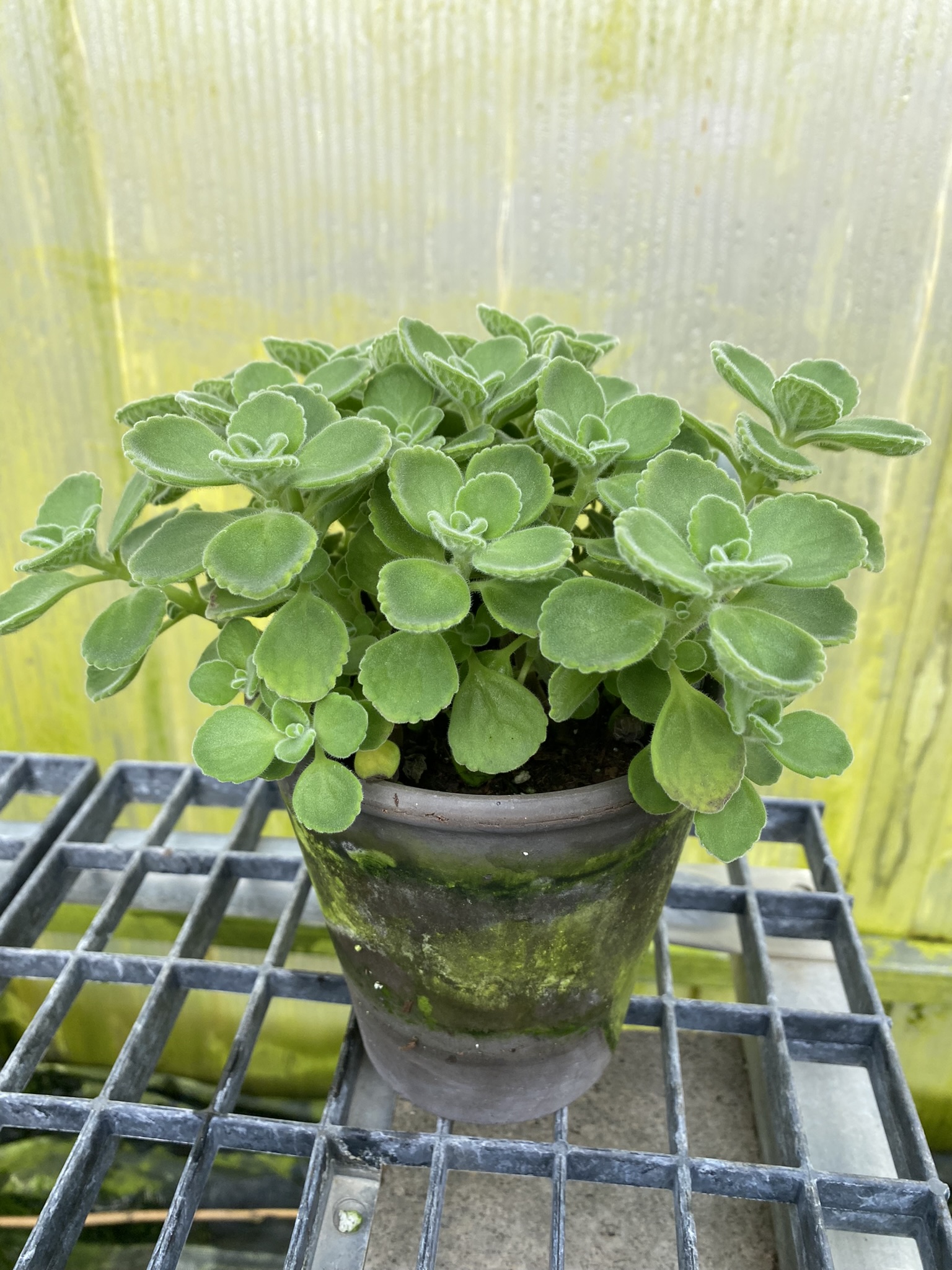 We typically grow Plectranthus Cerveza ‘n Lime plants in natural form in 4″ and 5″ clay pots, 8″ bowl